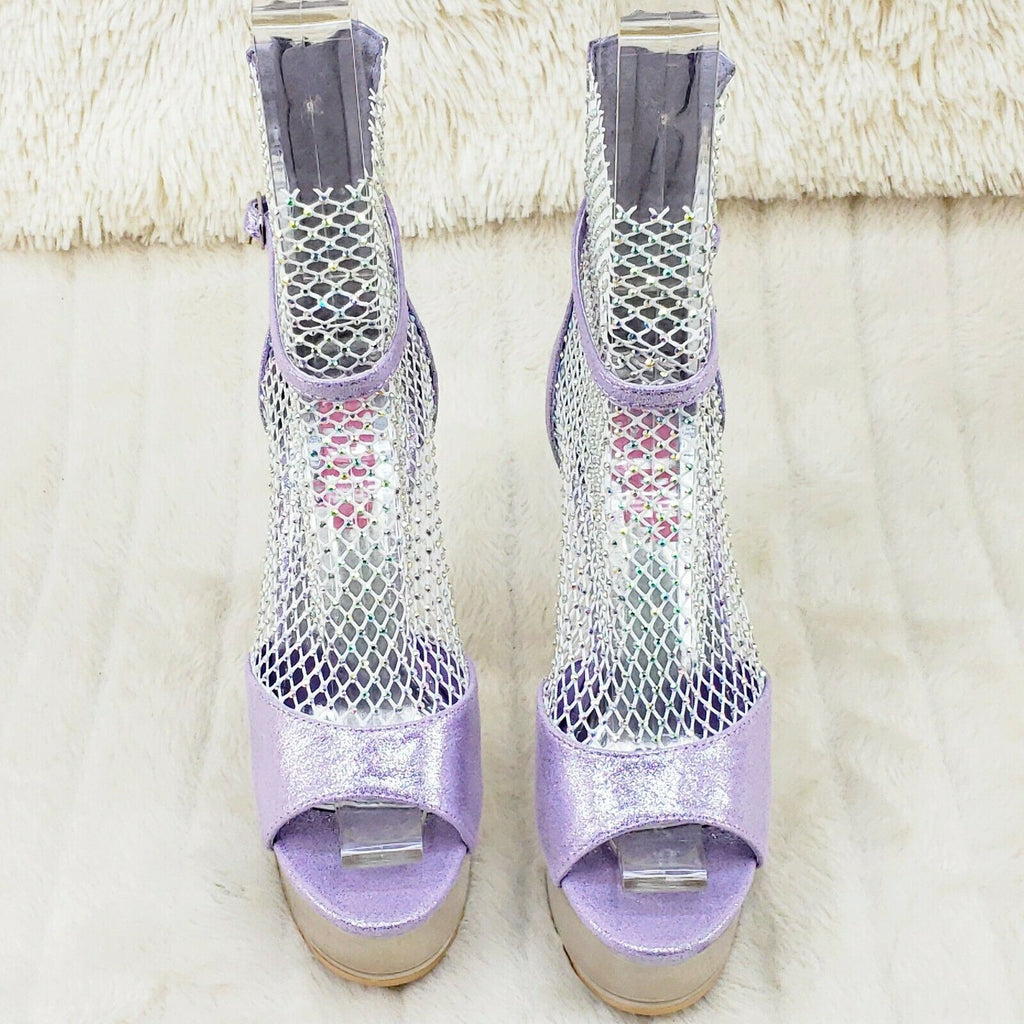 765 Voltaire Lilac Purple Mesh Rhinestone Clear Platform Heels Shootie Boots