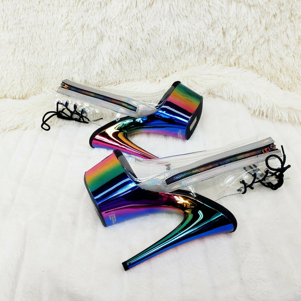 Adore 1018RC Rainbow Chromed 7" Platform Heel Ankle Boots US Size 8 NY