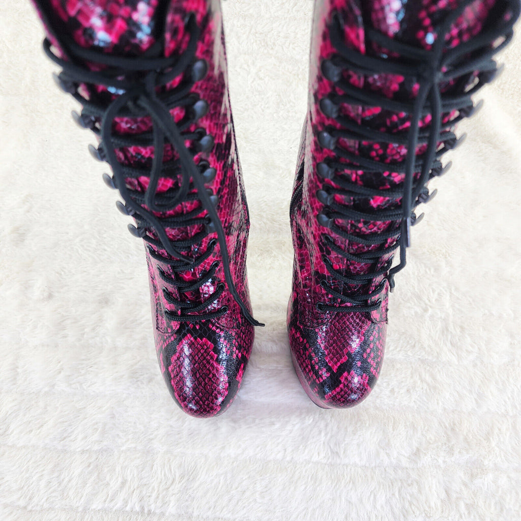 Adore 1020SPWR Hot Pink Snake Print 7" High Heel Platform Ankle Boots NY