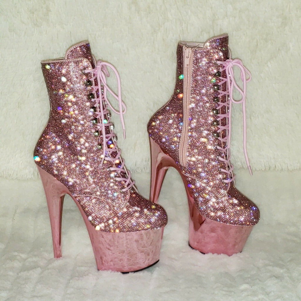 Adore 1020CHRS Bejeweled Lace Up 7" High Heel Chrome Platform Ankle Boots NY
