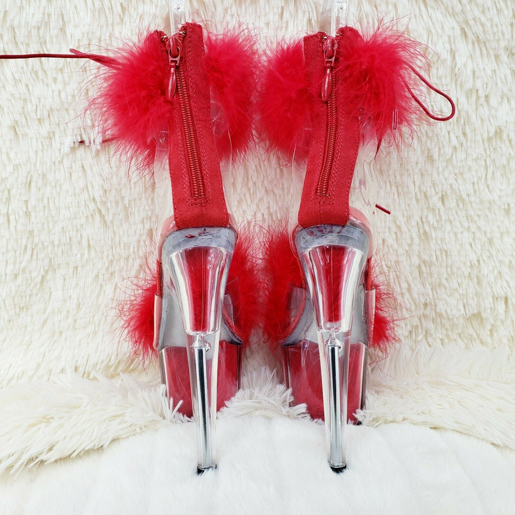 Adore 724F Red Marabou Platform Shoes Sandals 7" High Heel Shoes NY