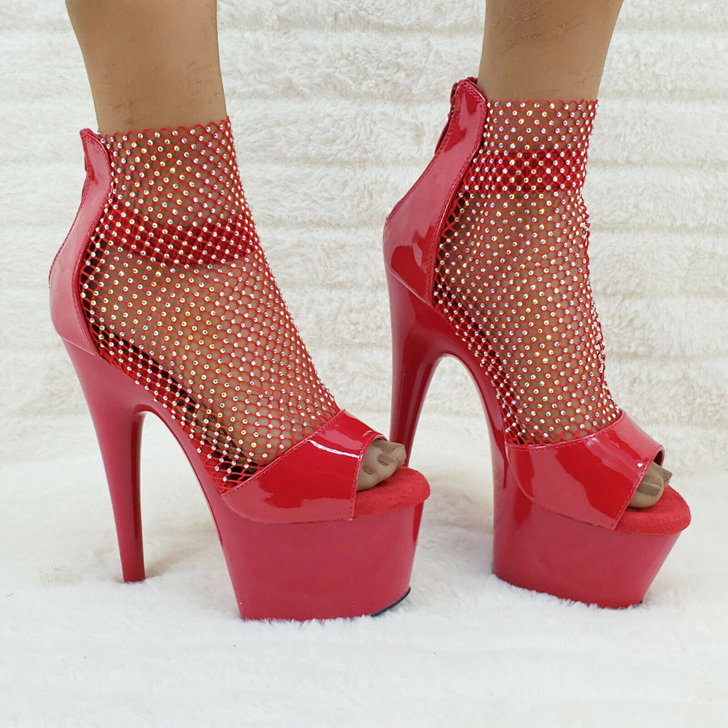 Adore 765RM Red Rhinestone Mesh Platform Sandals 7" High Heel Shoes NY