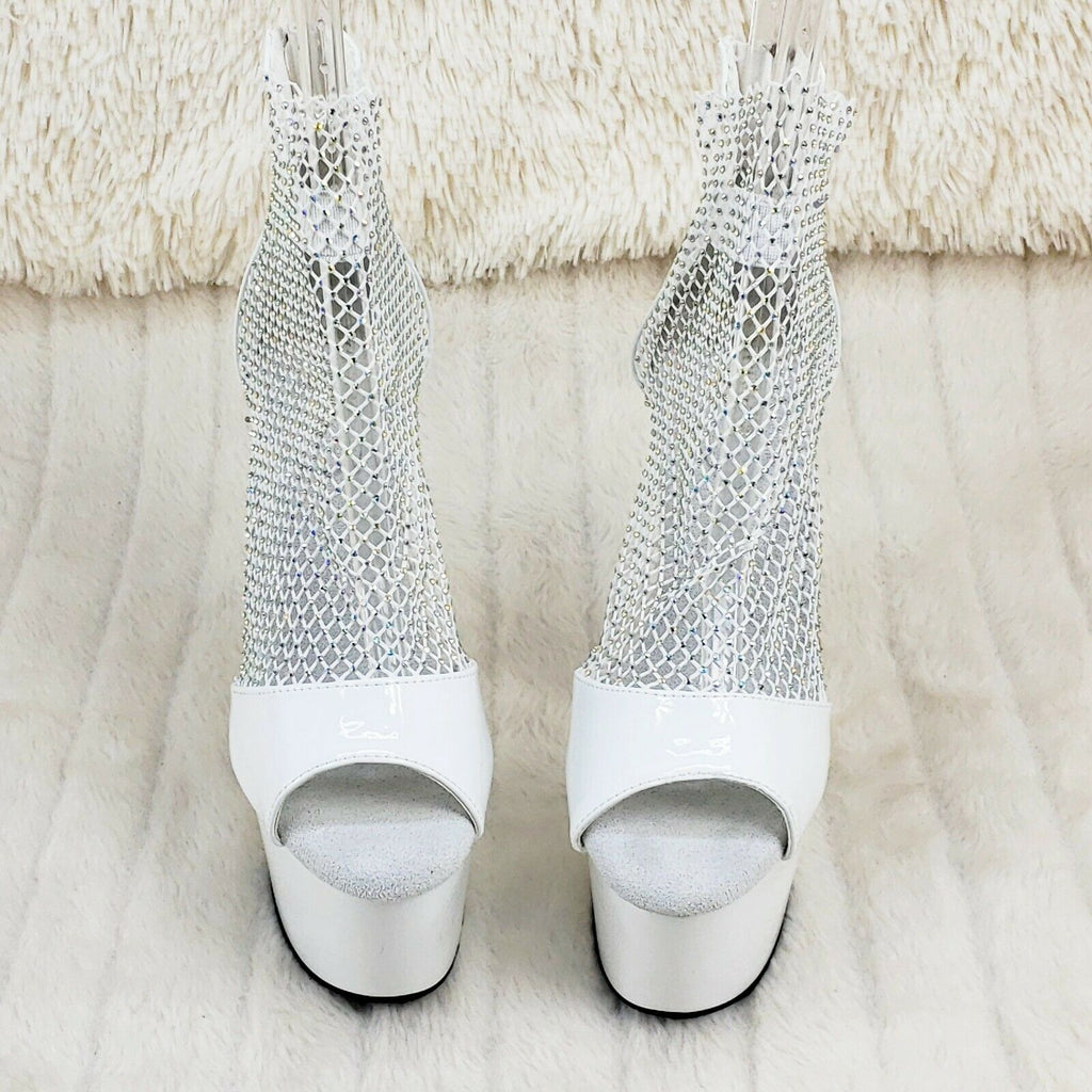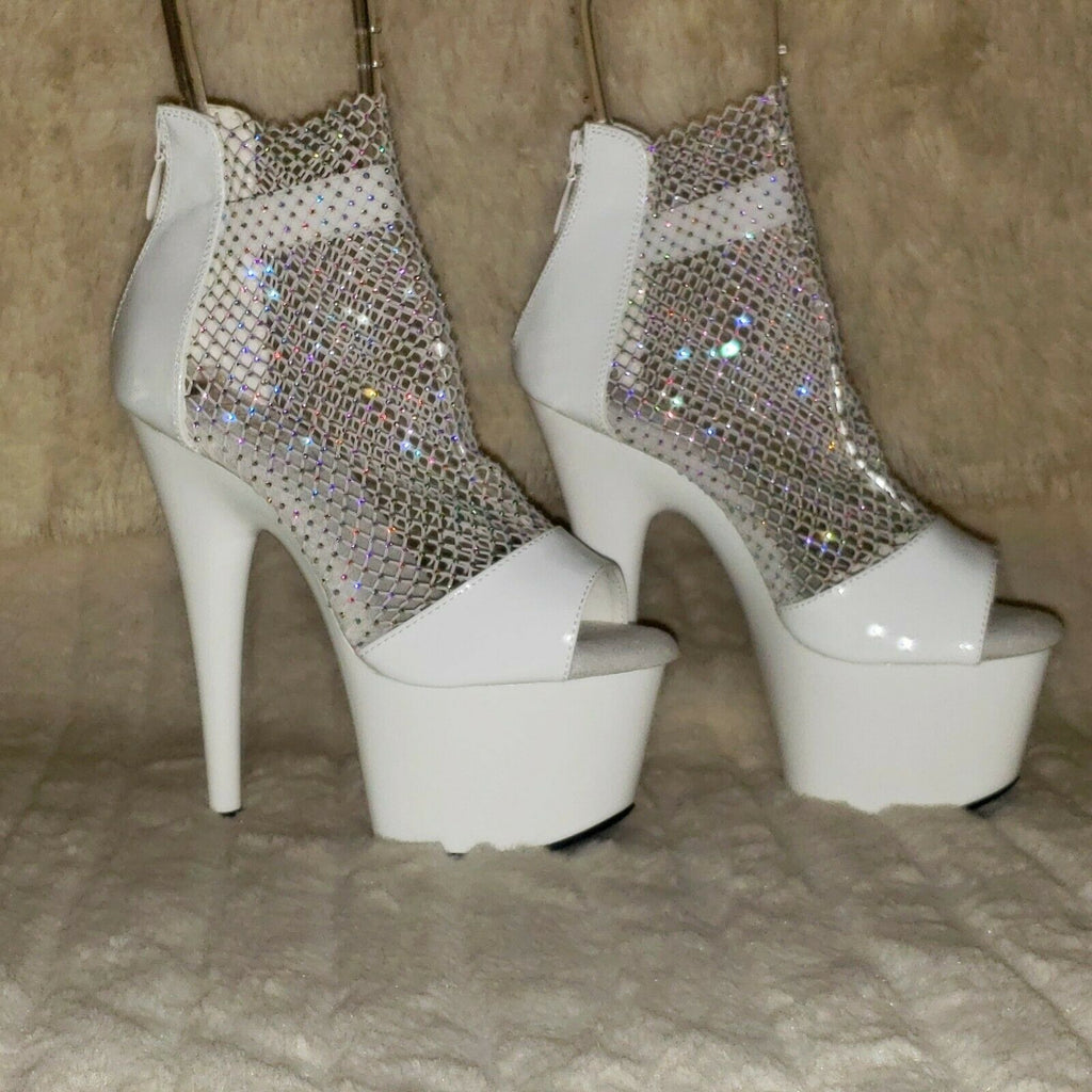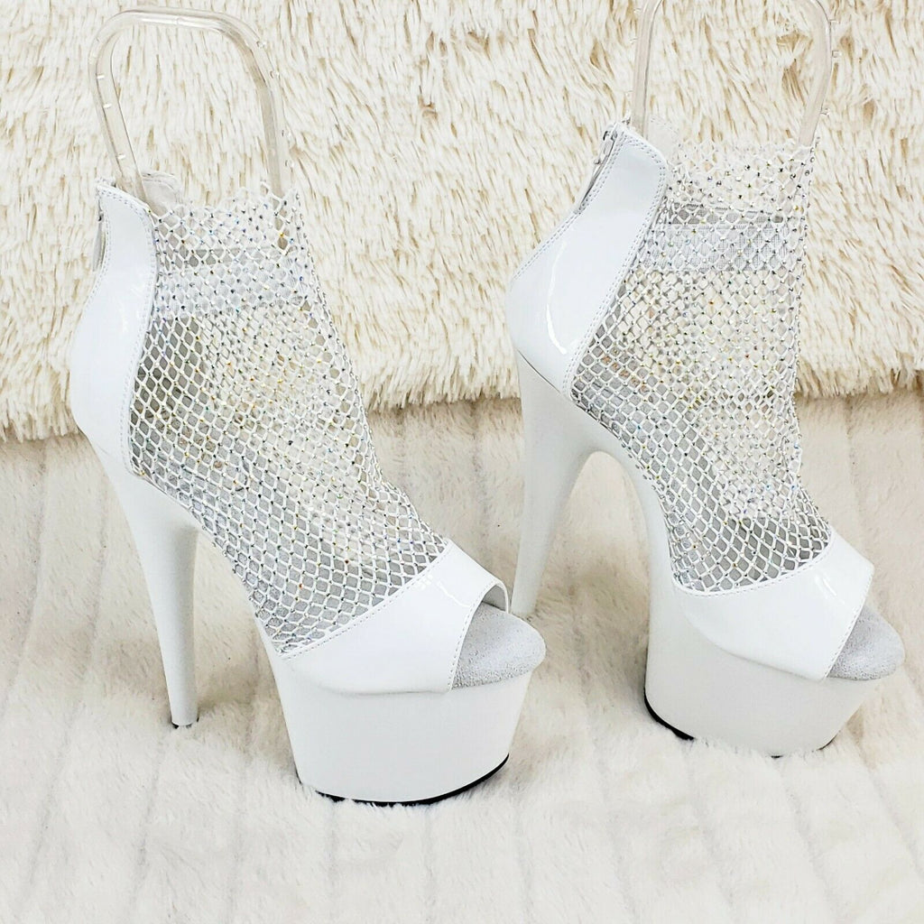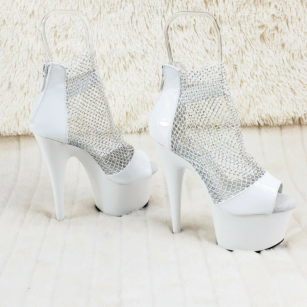Adore 765RM White Patent Rhinestone Mesh Platform Sandals 7" High Heel Shoes NY