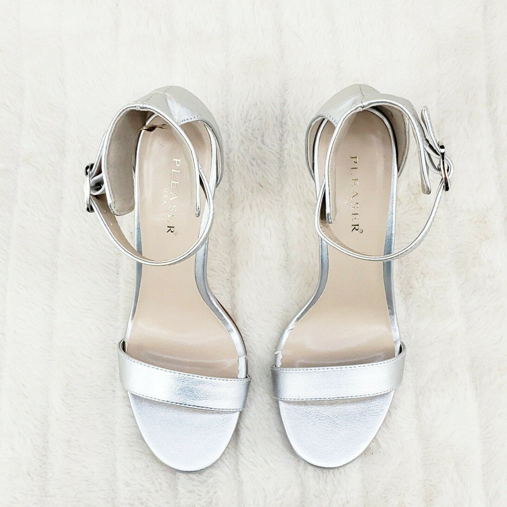 Amuse 10 Silver Matte Ankle Strap 5" High Heel Shoes Sizes 8 9 10 NY
