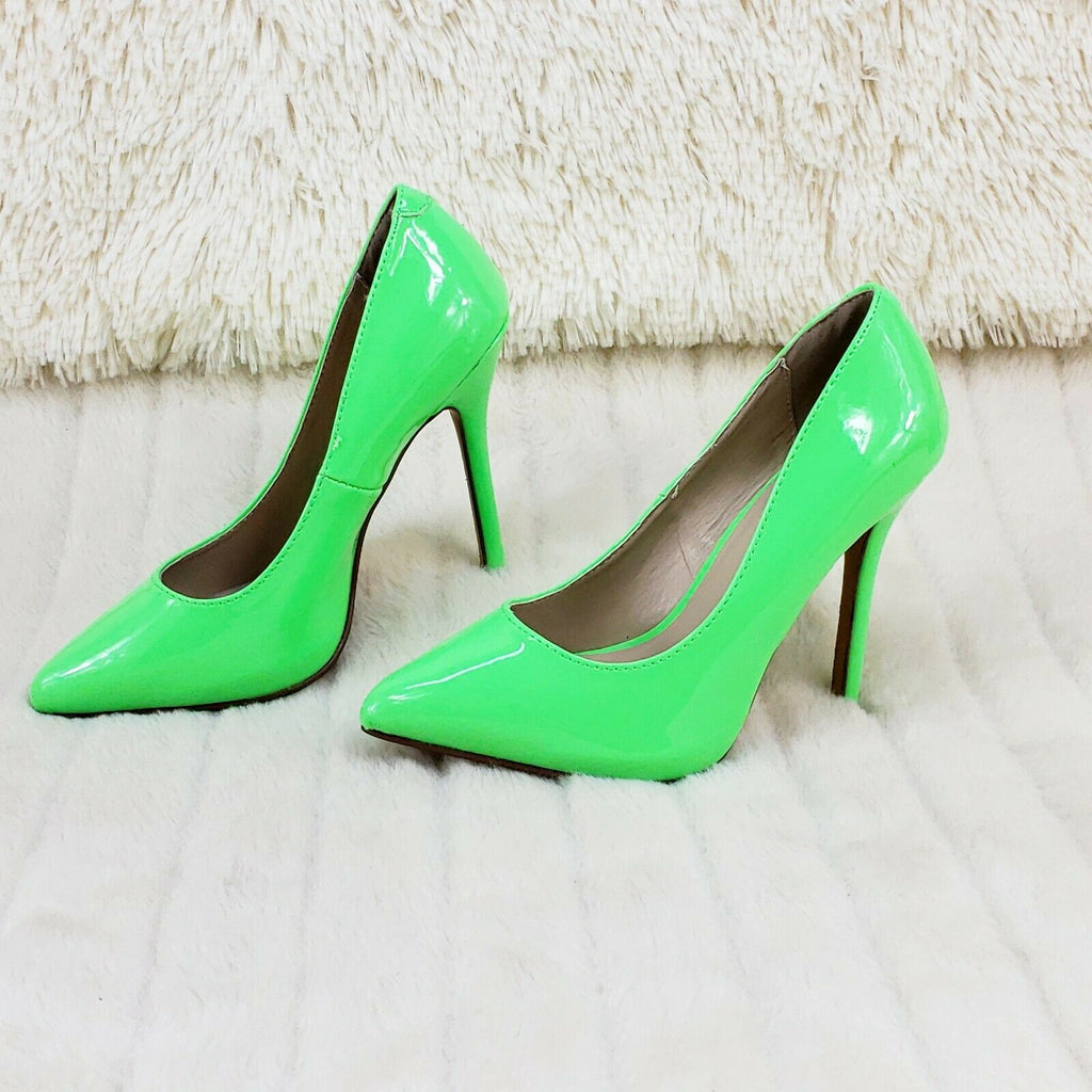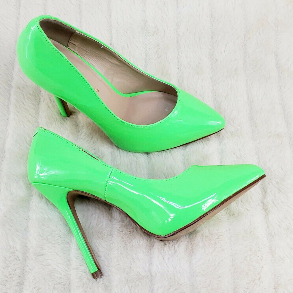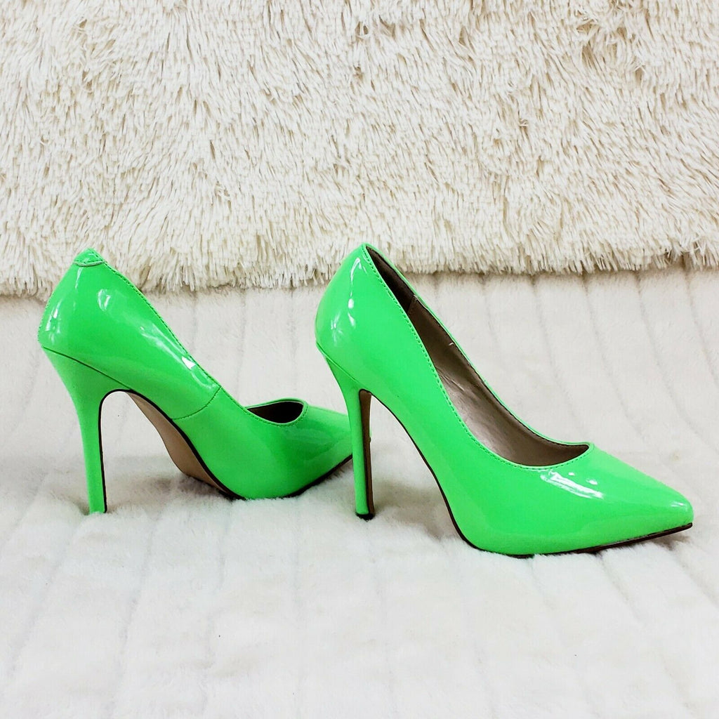 Amuse 20 Neon Green Patent 5" High Heel Shoes Pumps NY