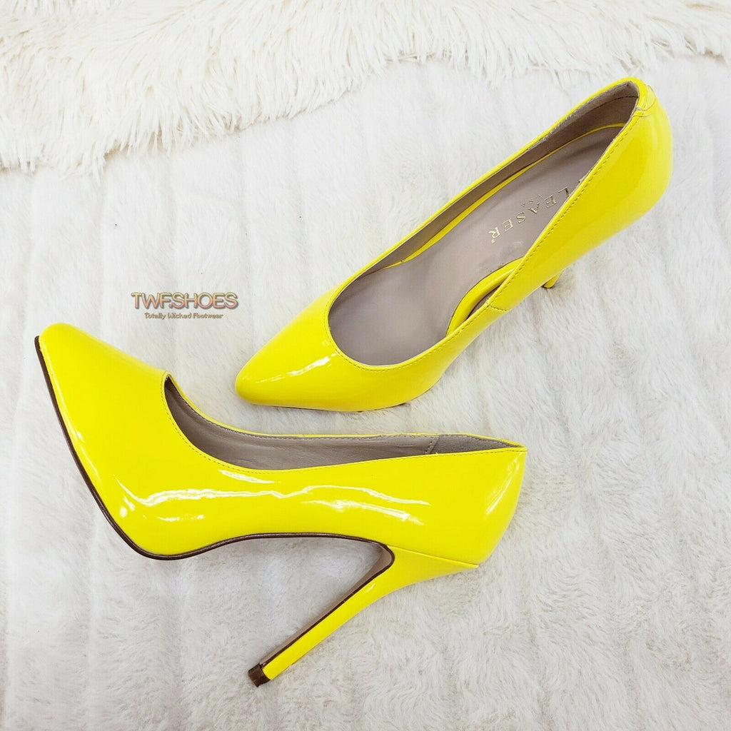 Amuse 20 Neon Yellow Patent 5" High Heel Shoes Pumps NY