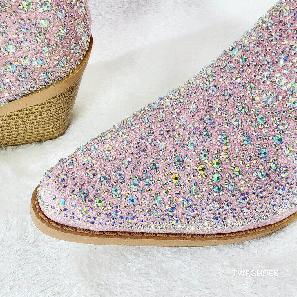 Crystal Pink Leatherette With Rhinestones Country Glam Western Cowgirl Knee Boots
