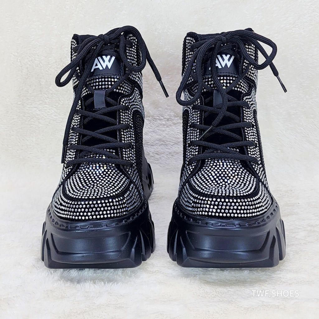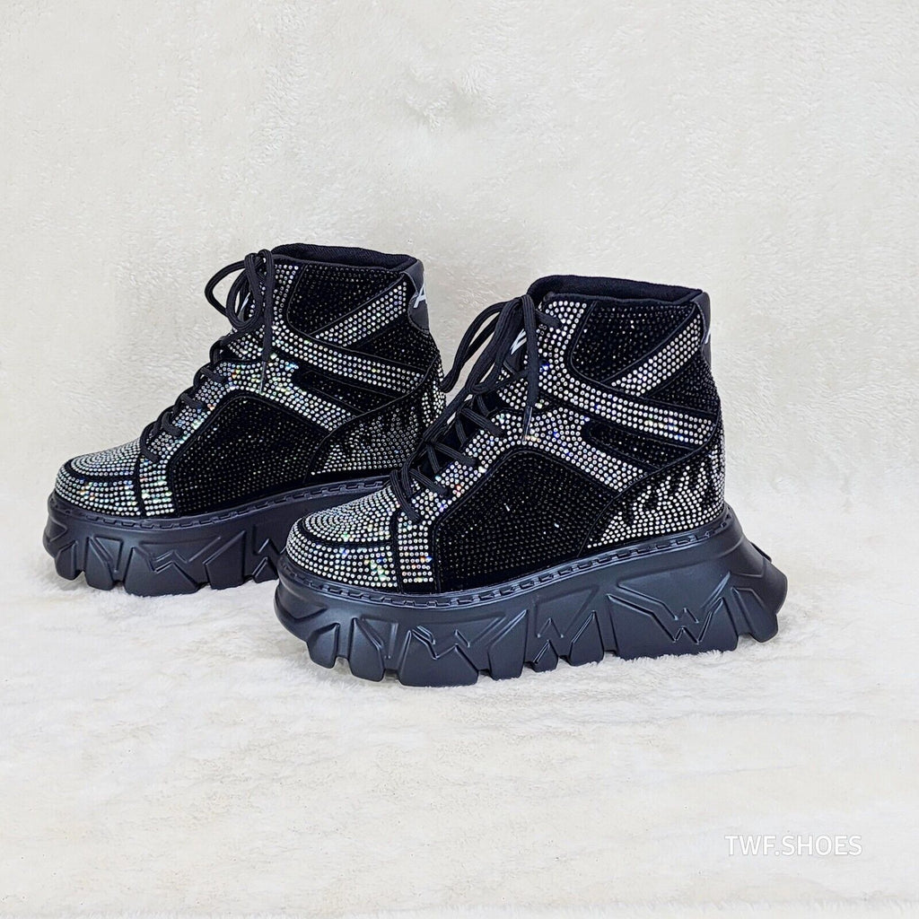 Anthony Wang Berry Silver & Black Rhinestone Platform Hidden Wedge Sneakers