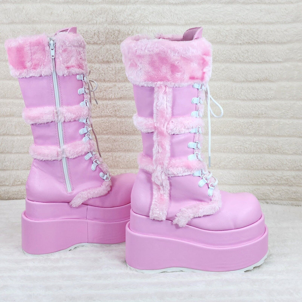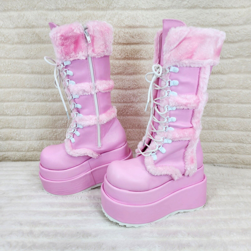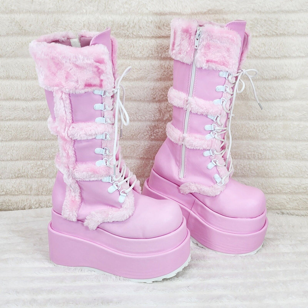 Bear 202 Pink Faux Fur / V Leather Platform Goth Punk Calf Boots NY Stomper