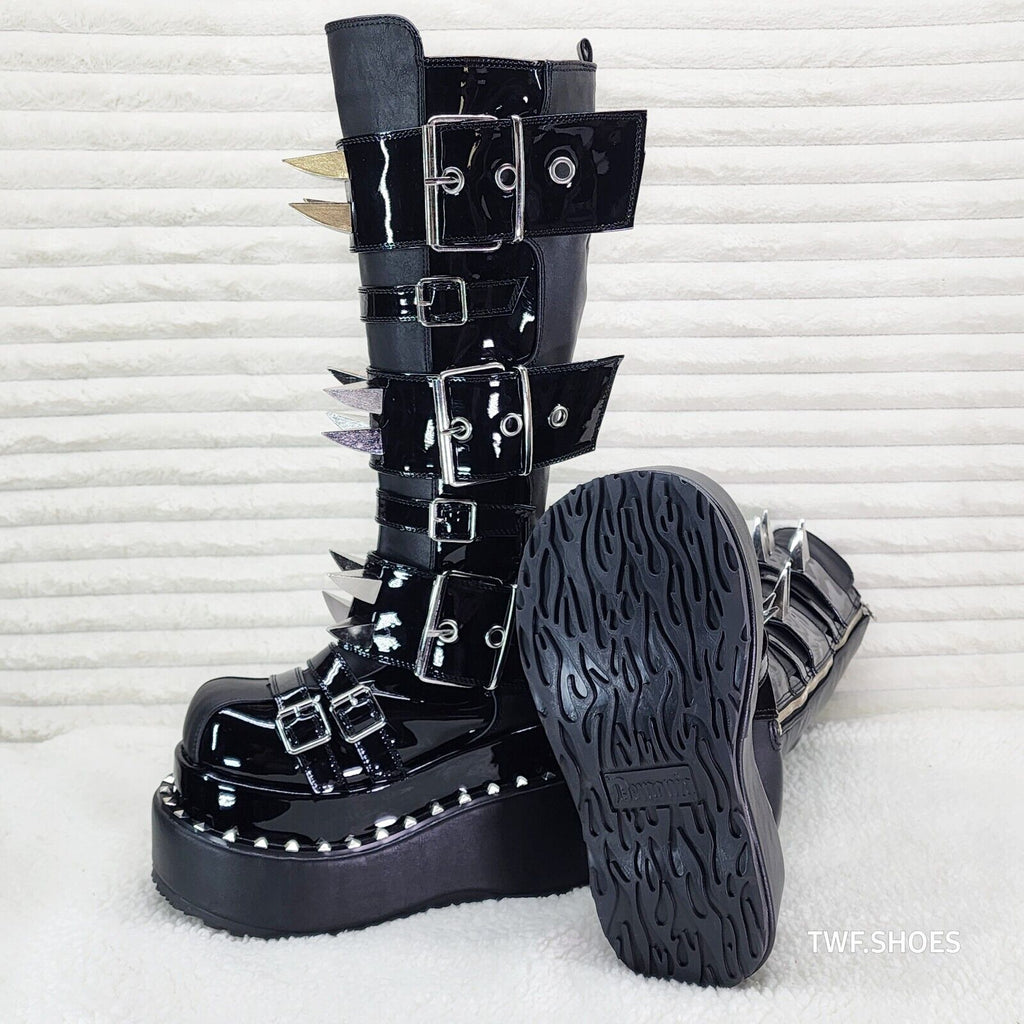 $ 164.95Brand New Demonia Bear 4 1/2" (114mm) Tiered Pyramid Stud Trimmed Platform Knee High Boots Metal Claw Spiked Multi-Size Buckle Straps With Inside Metal Zip Closure Authentic Demonia In Original Box TWF.SHOES Authorized Demonia Retailer For Over 10 Years