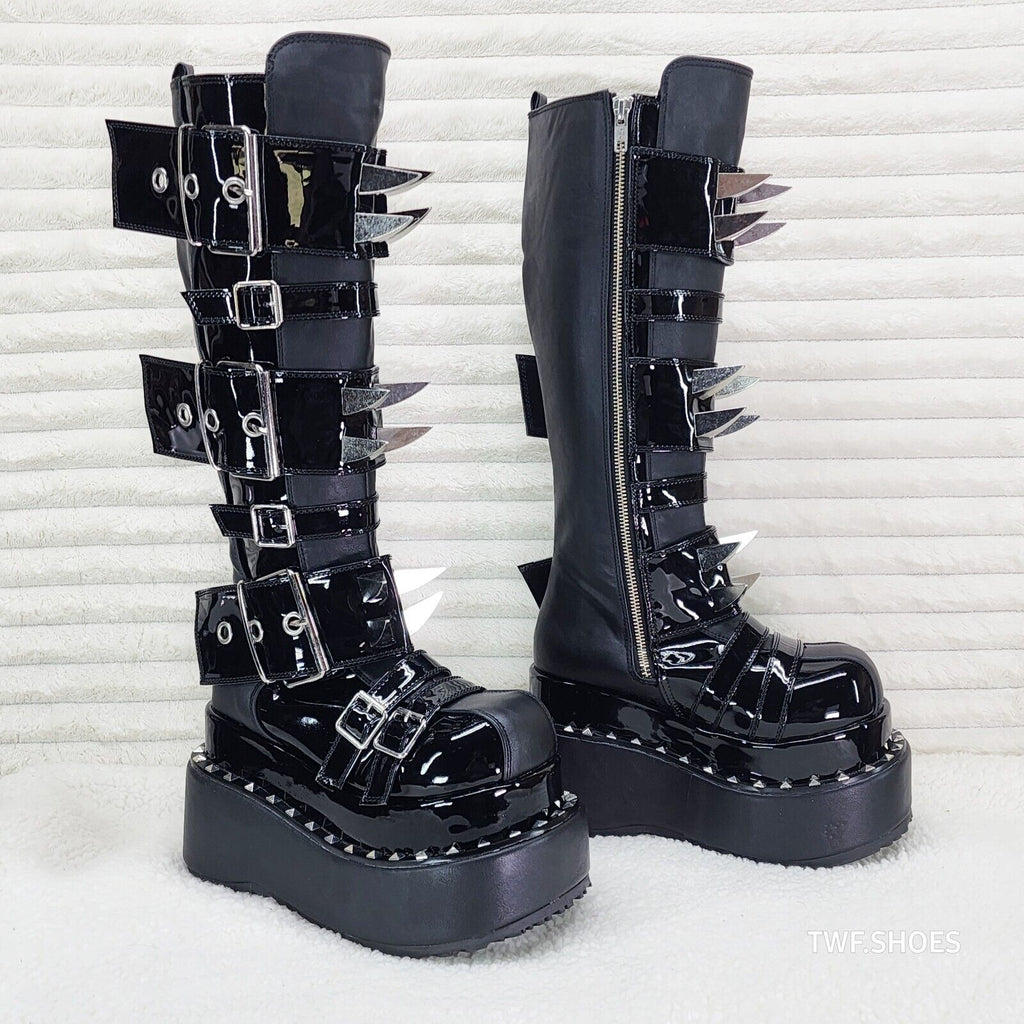 Bear 512 Metal Claw Spiked Platform Punk Goth Knee Boots Patent Matte Finish