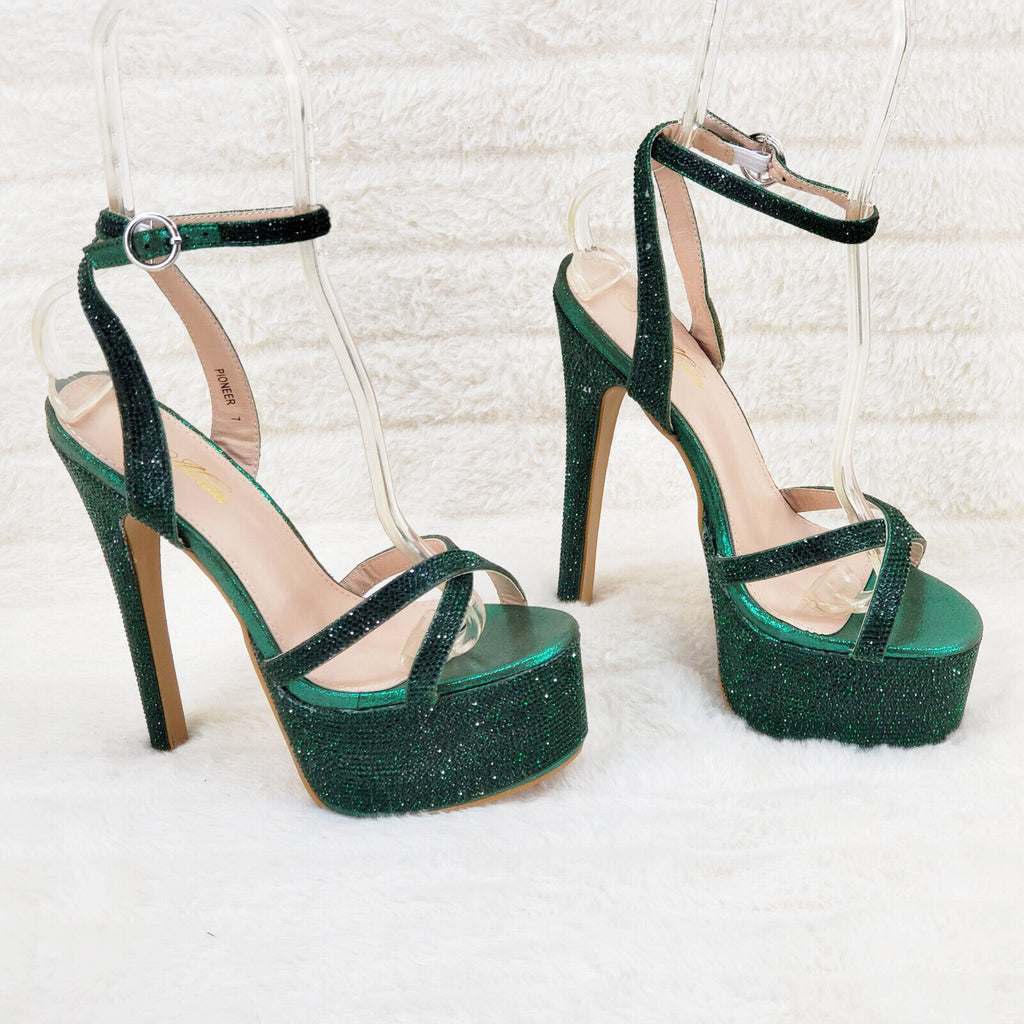 Bejeweled Pioneer Emerald Green Sparkling Rhinestone Platform 6.5" Heels Shoes