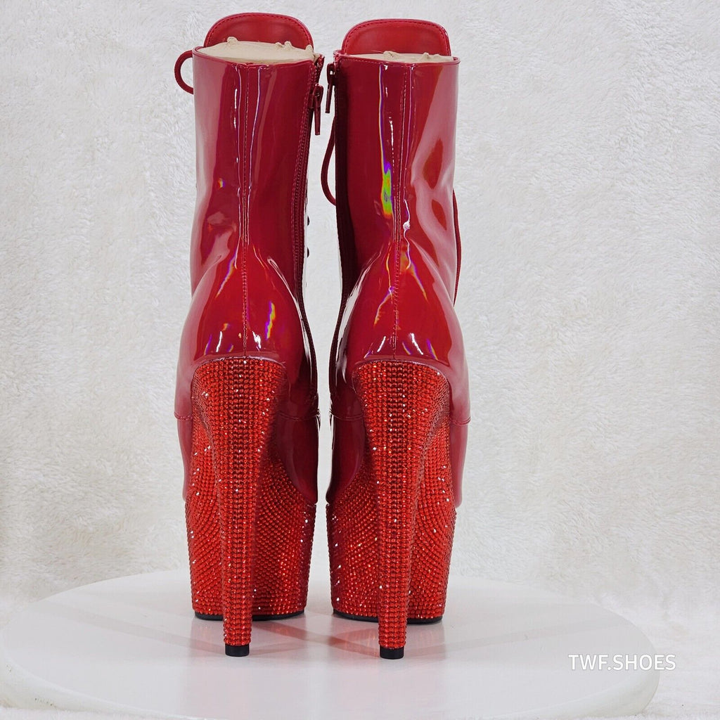Bejeweled Red Rhinestone Platform Lace Up Ankle Boots 7" High Heels IN HOUSE