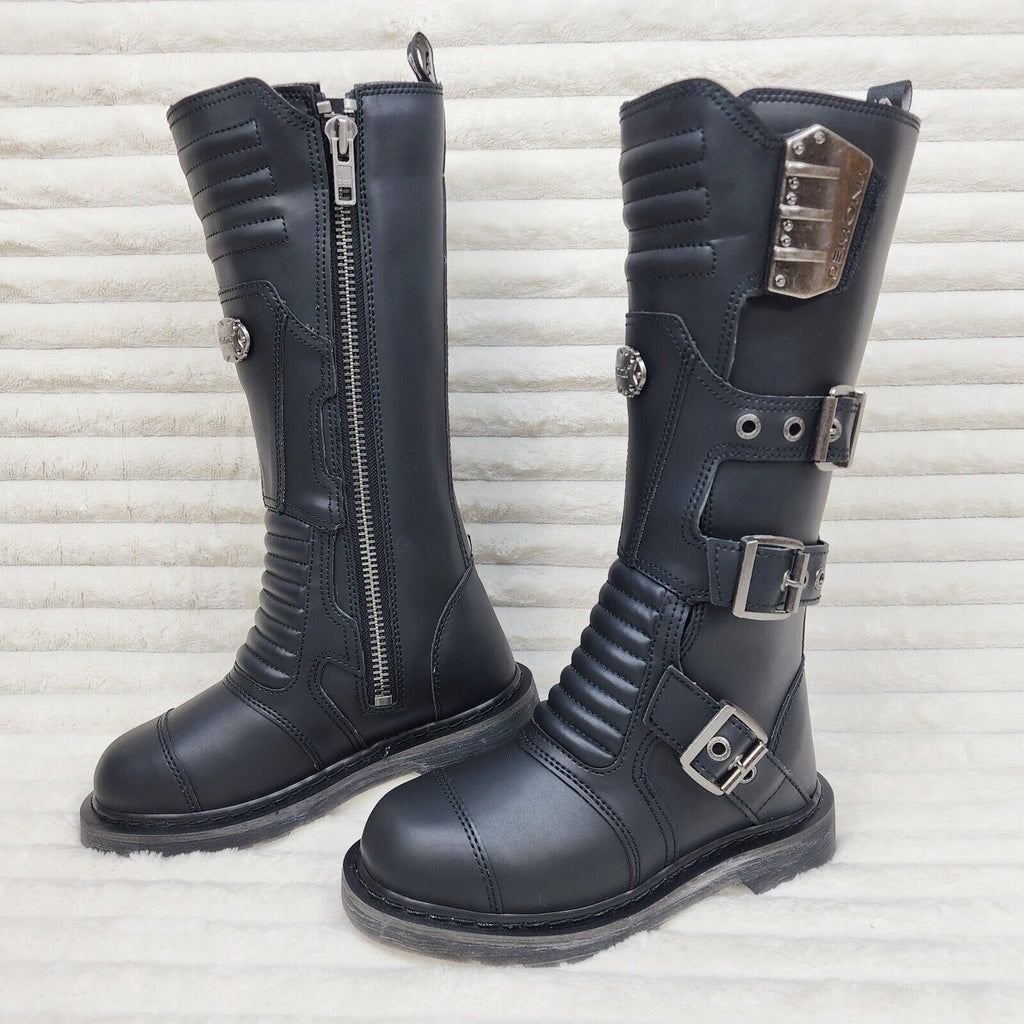 Bolt 405 Goth Combat Biker Knee Boots Black Matte Men Sizes IN HOUSE NY DEMONIA