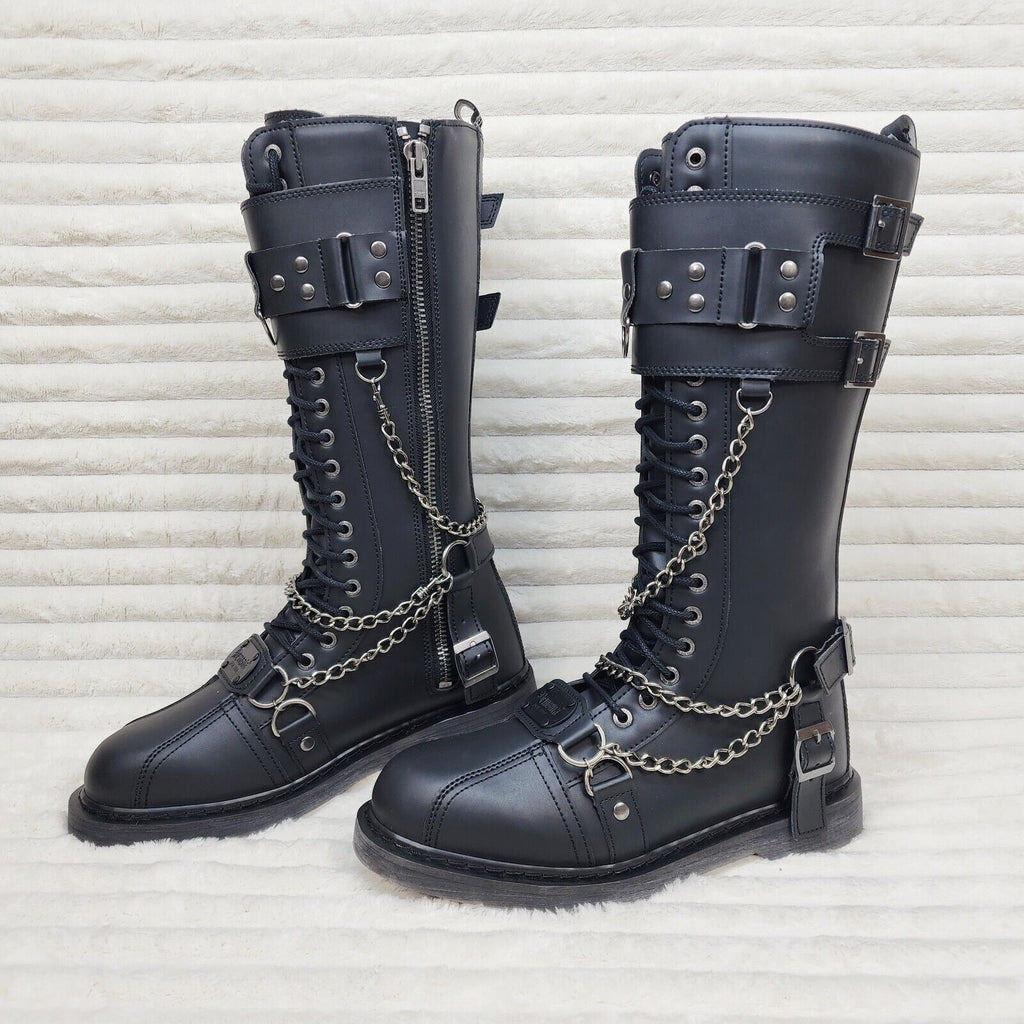 Bolt 415 Goth Combat Biker Knee Boots Black Matte Men Sizes IN HOUSE NY DEMONIA