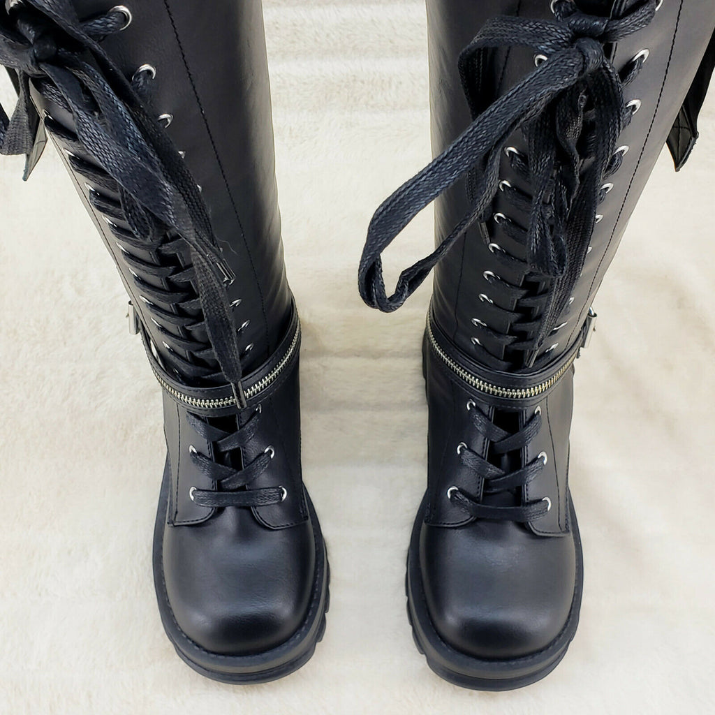 Bratty 206 Zipper Strap Biker Goth Punk Lace Up Knee Boots In House NY