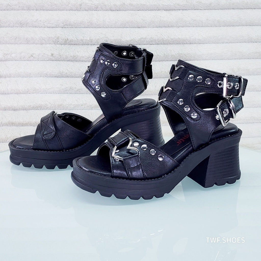 Bratty Block Heel Goth Punk Platform Sandals In House NY DEMONIA