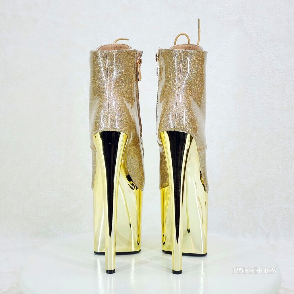 Bulls Gold Glitter Patent Chrome Platform High Heel Ankle Boots