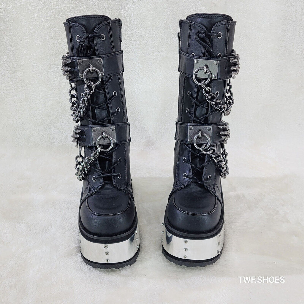 Camel 120 Demonia Goth Punk Mid Calf Platform Boots Skeleton Hands Chains