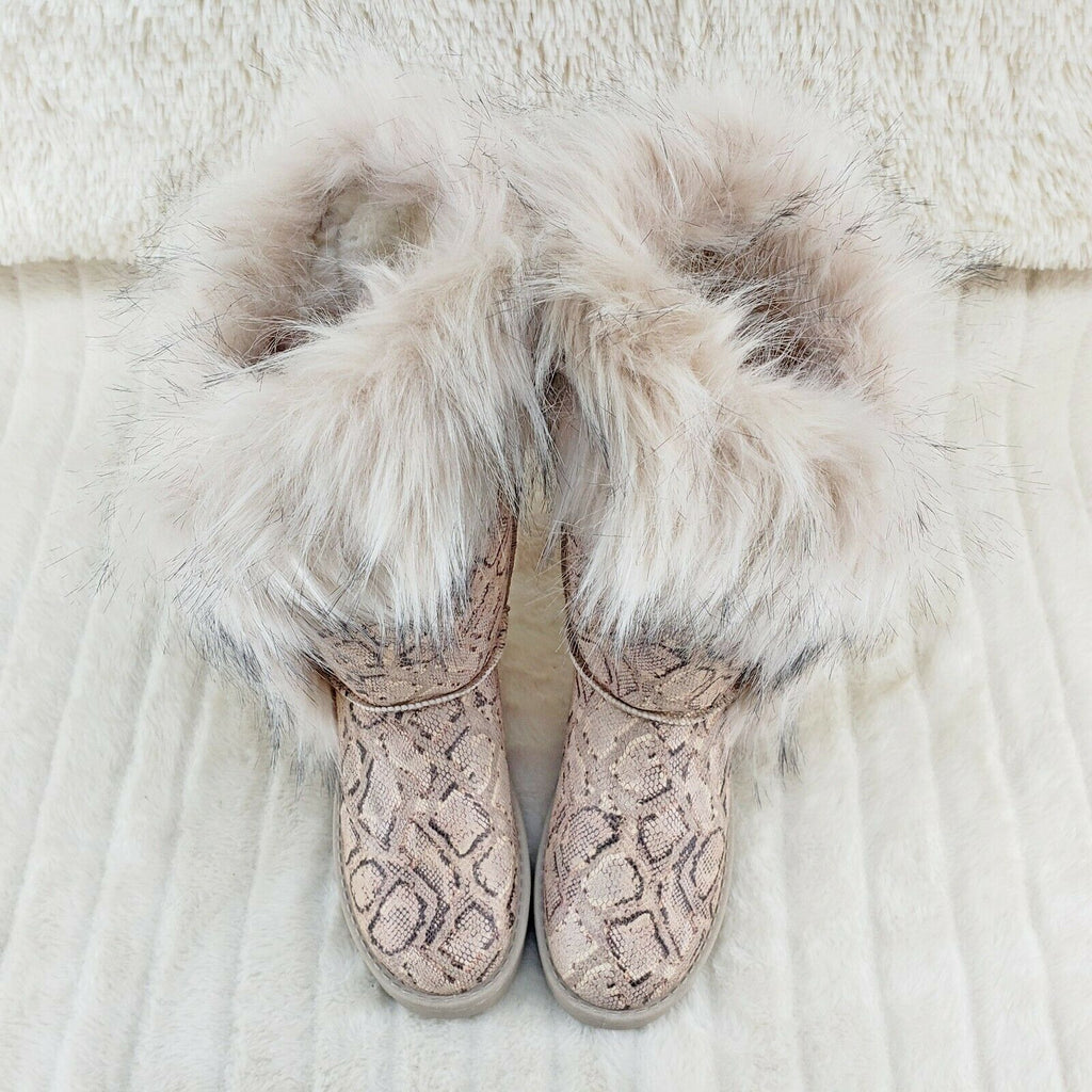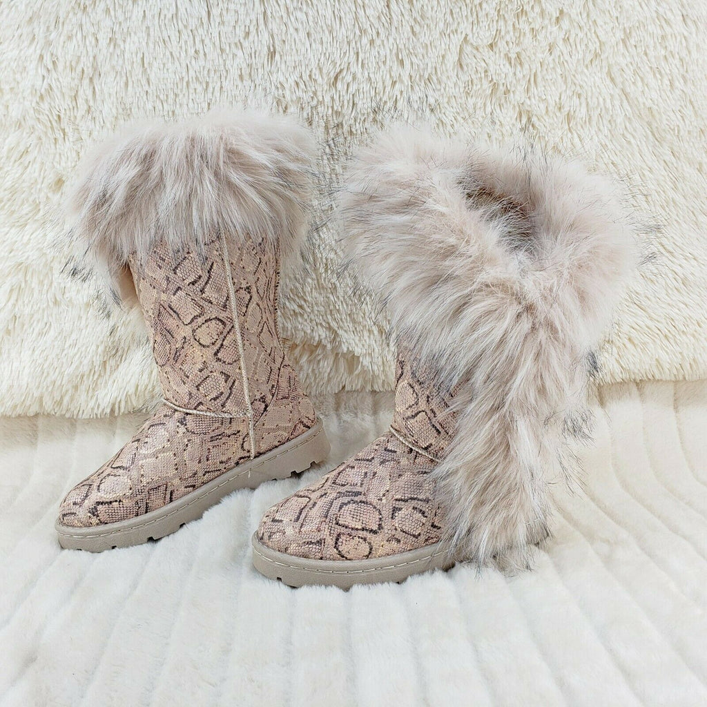Chi Chi Tall Furry Snake Beige Faux Fur Lined Flat Winter Boots US Women's