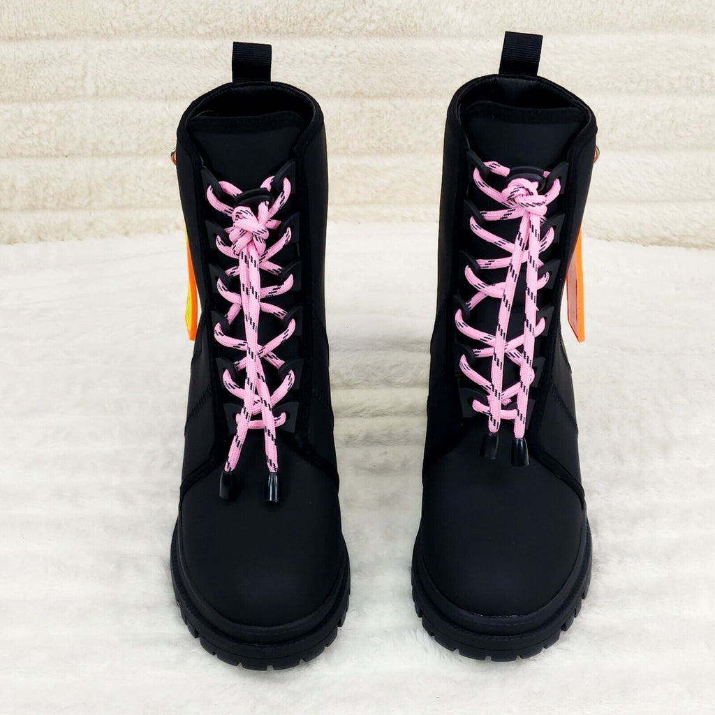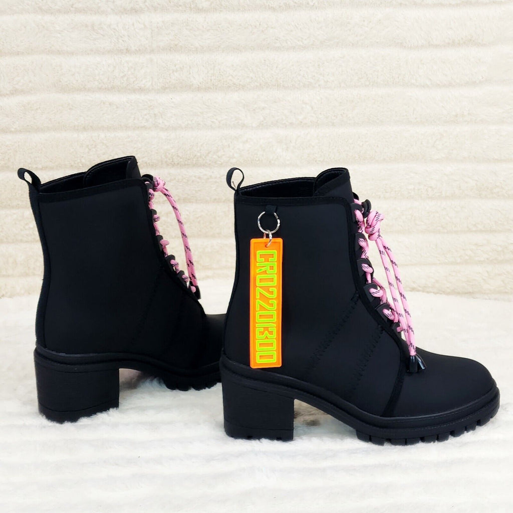CR Aces Black Iridescent Rhinestone Lace Up Platform Sneaker Combat Ankle Boots