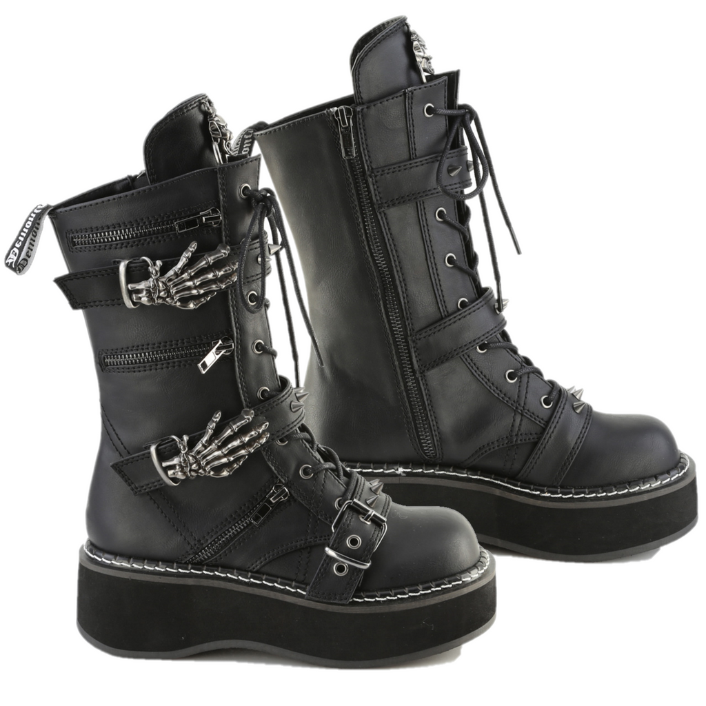 Cryptic Goth Platform Combat Boots Skeleton Buckle Straps Emily 82