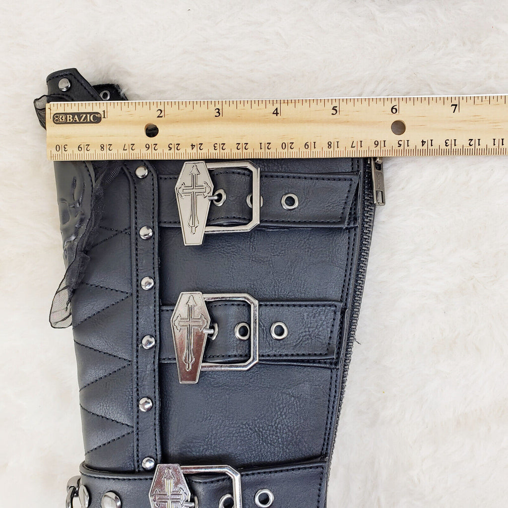 Crypto 67 Coffin Skull & Chain Black Mid Calf Platform Heel Gothic Boots NY
