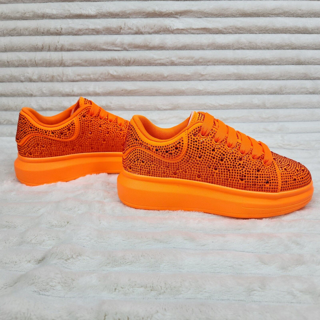 Cush Baby Bright Orange Rhinestone Sneakers Tennis Shoes