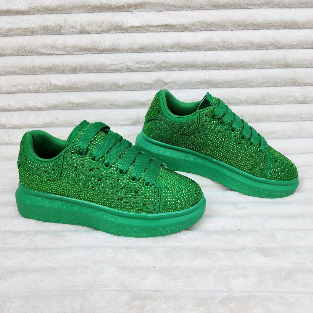 Cush Baby Green Rhinestone Sneakers Tennis Shoes