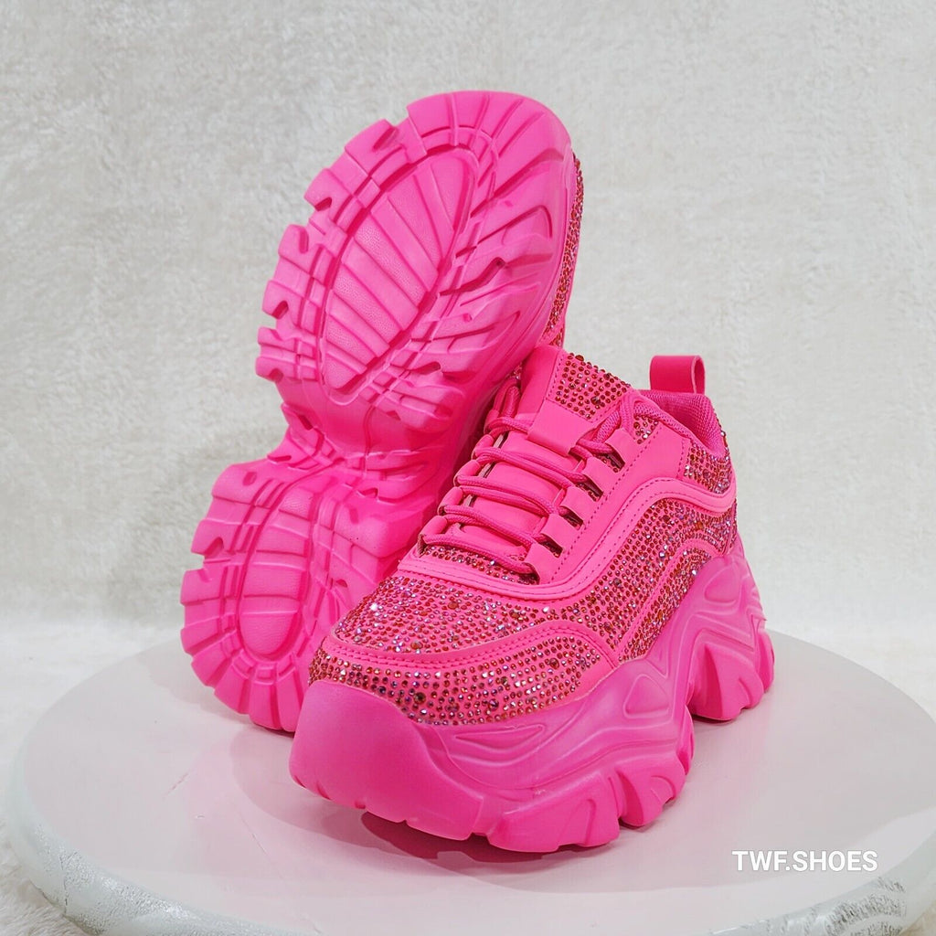 Cush Sport Rhinestone Comfy Platform Light Weight Sneakers Hot Pink