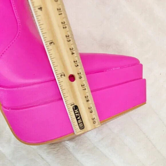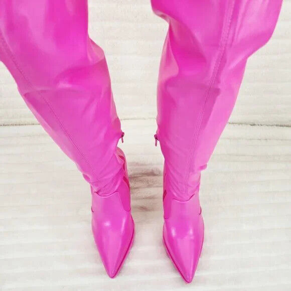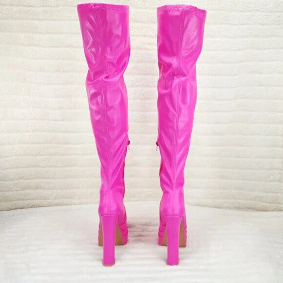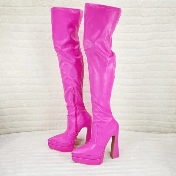 Delicious Hot Pink Fuchsia Pointy Toe Platform High Heel Stretch Thigh Boots