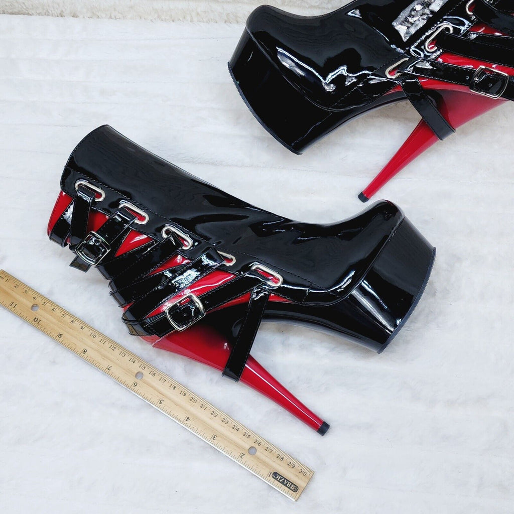 Delight 1012 Black / Red Buckle Strap 6" High Heels Platform Ankle Boots NY