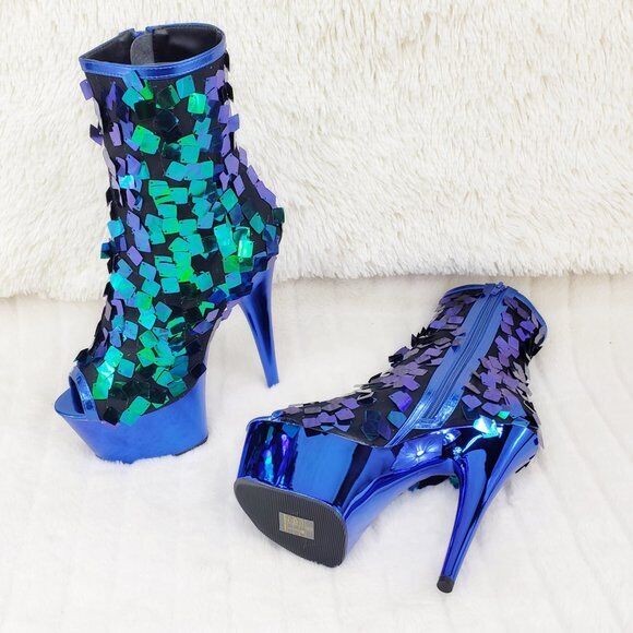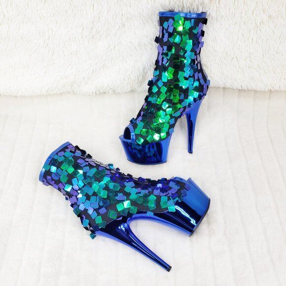 Delight 1031SQ Green Mermaid Sequin Ankle Boot 7" High Heel Shoe Sizes 11 NY