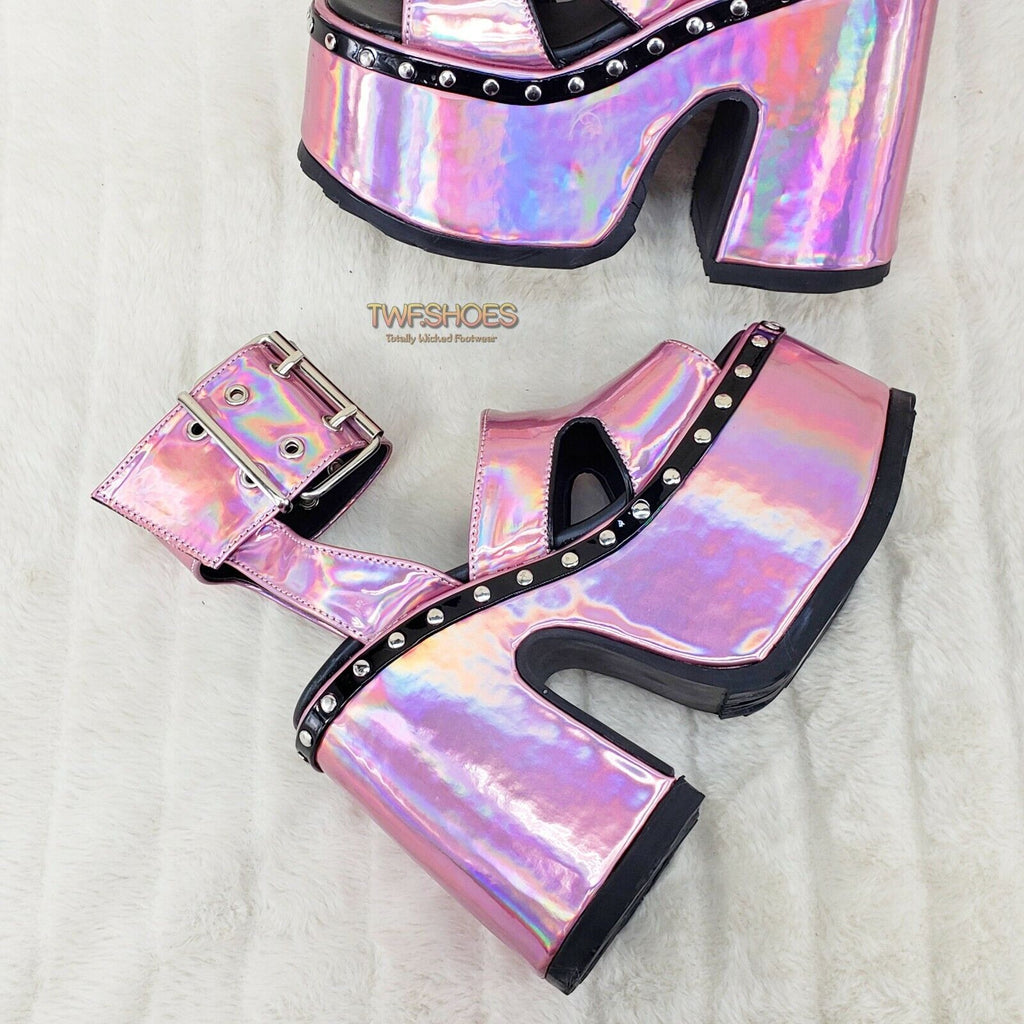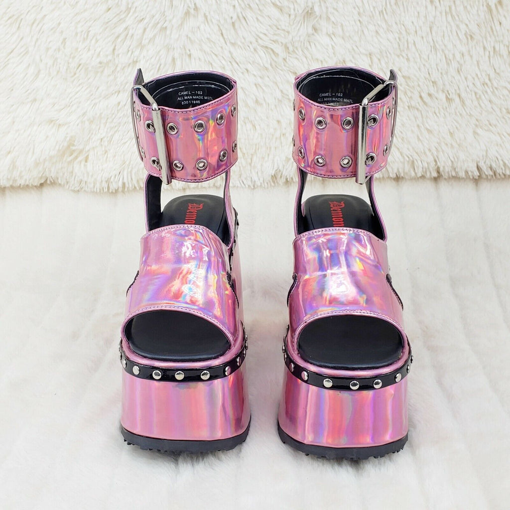 Demonia 102 Camel Stacked Pink Hologram Platform Sandals Goth Punk 6-12 NY