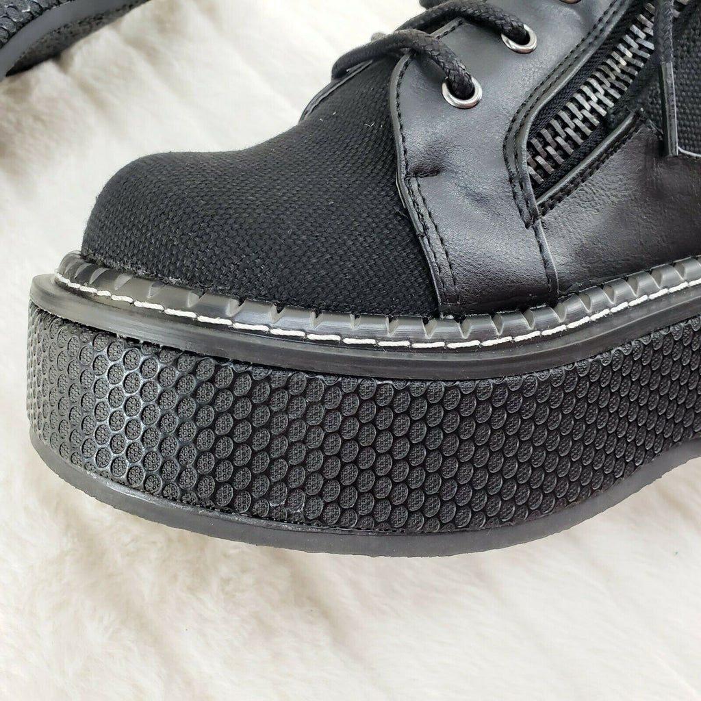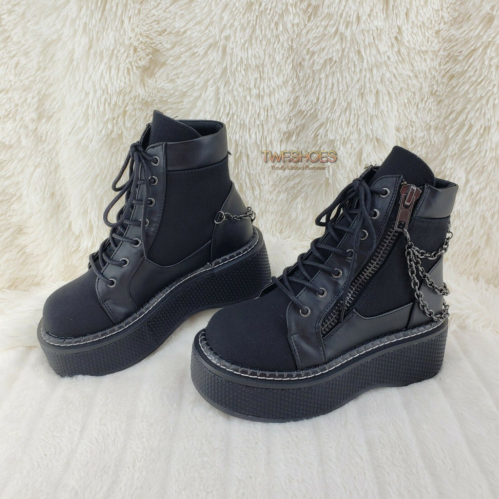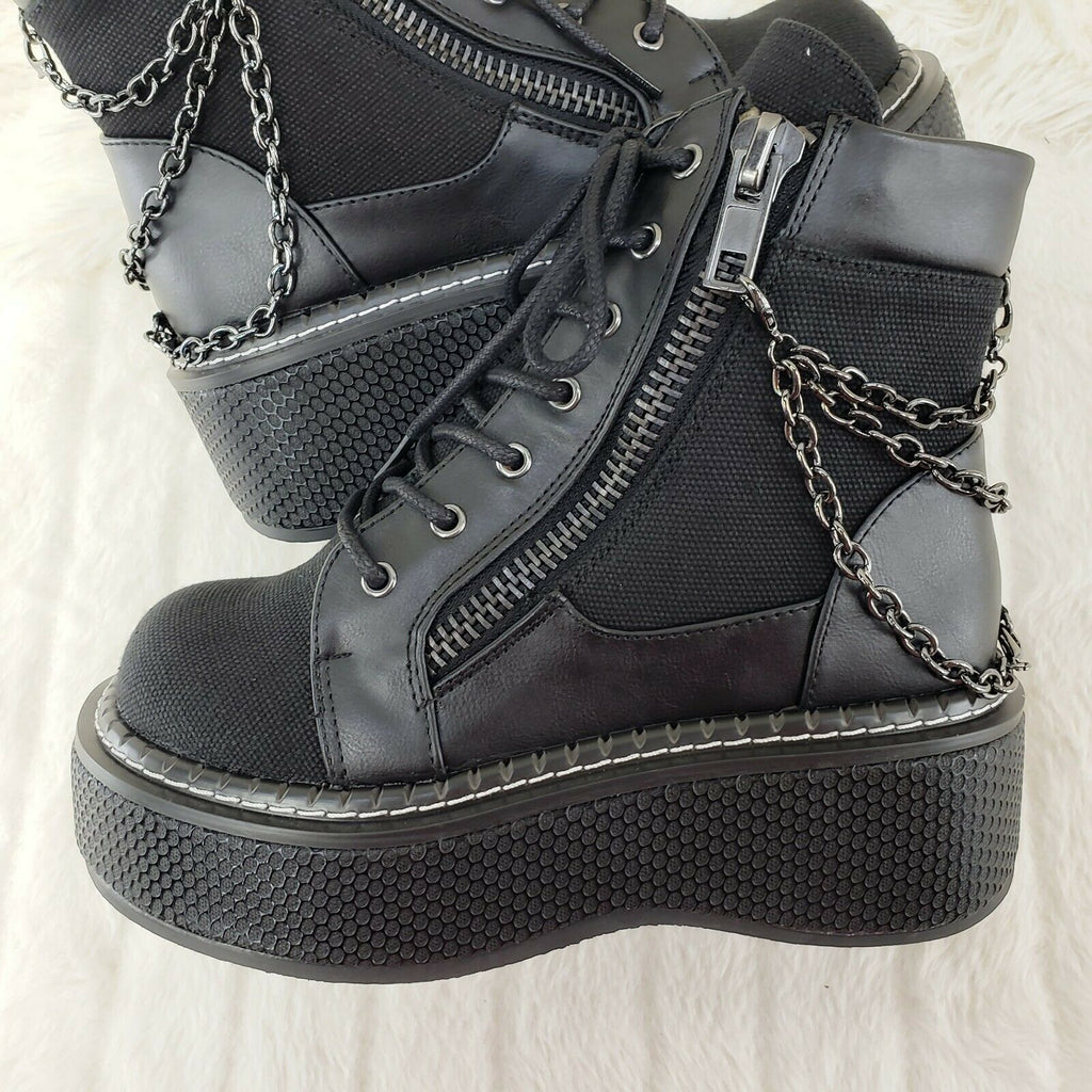 Emily 114 Black Canvas Chain 2" Platform Punk Goth Ankle Boots NY