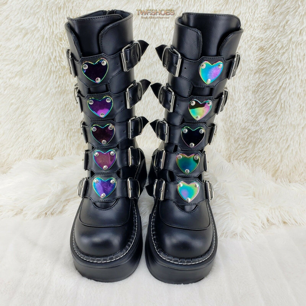 Emily 330 Black Matte 2" Platform Metal Heart Plate Combat Boots 6-12 NY
