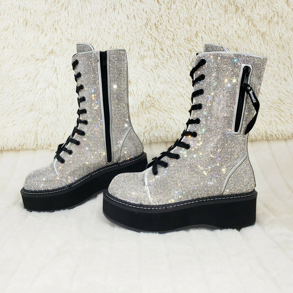 Emily 330R Rhinestone 2" Platform Combat Boots 6-12 NY