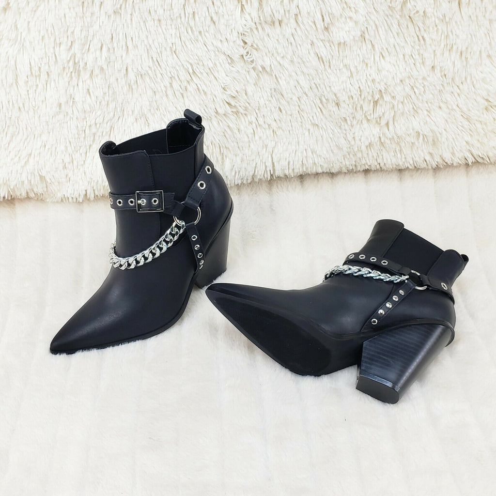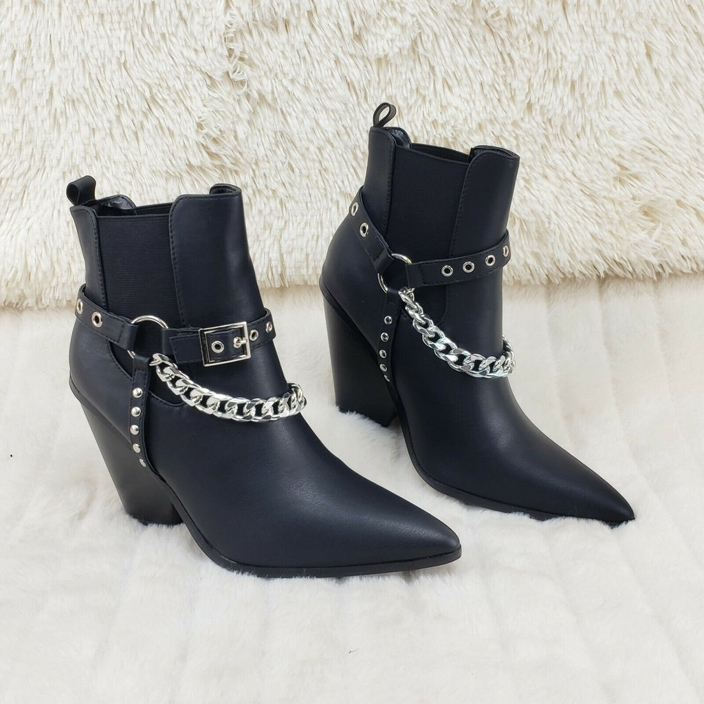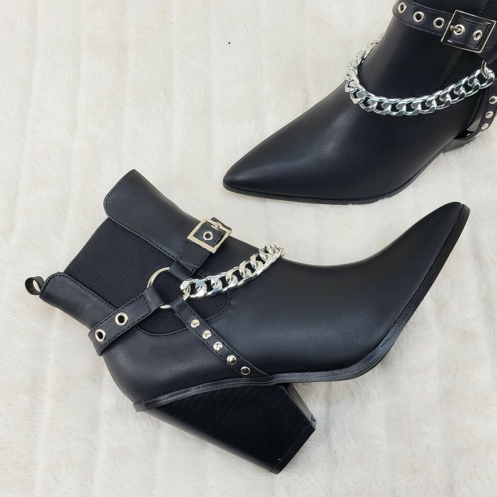 Dimitri Western Chain Strap Cowboy / Cowgirl Pull Ankle Boots Black 6-11