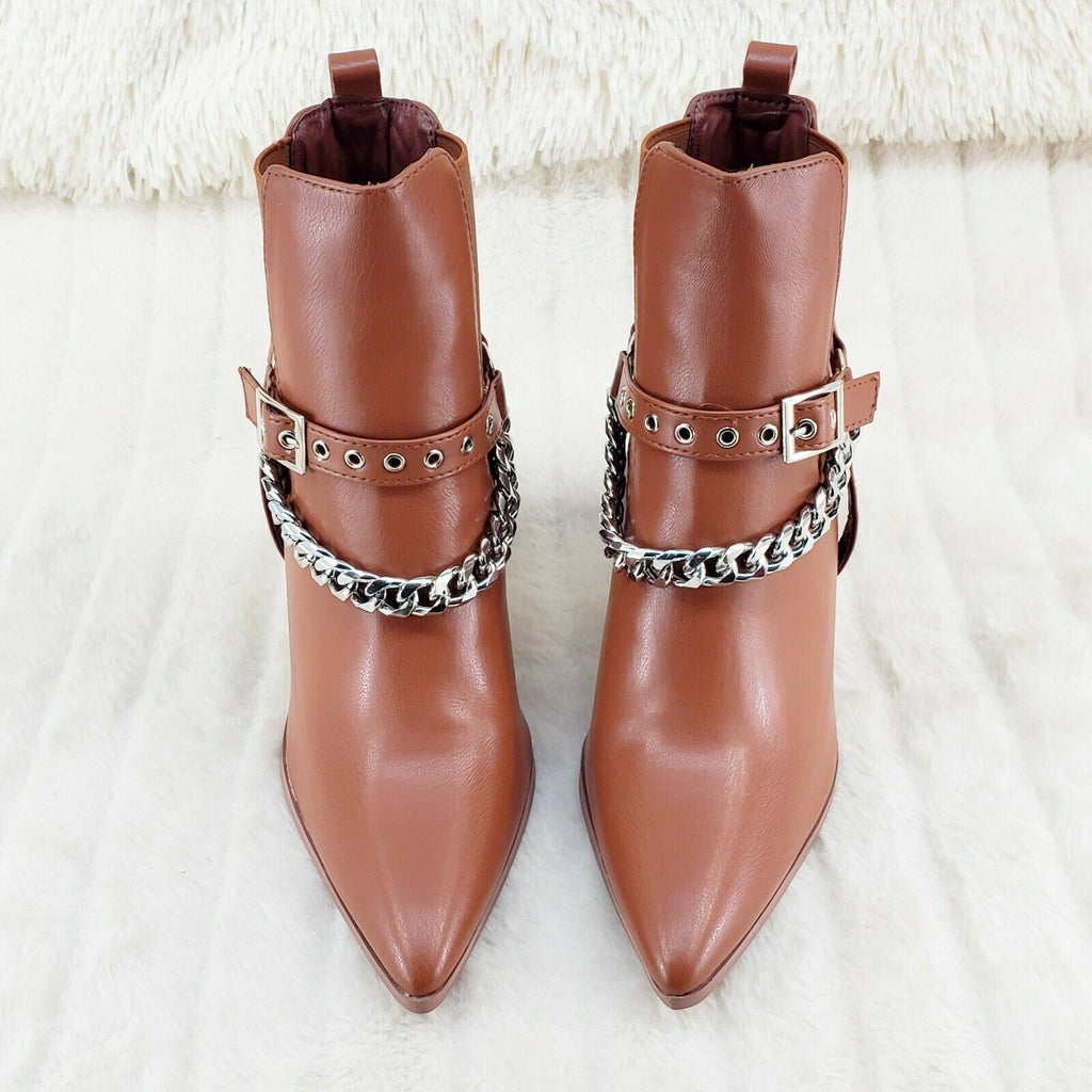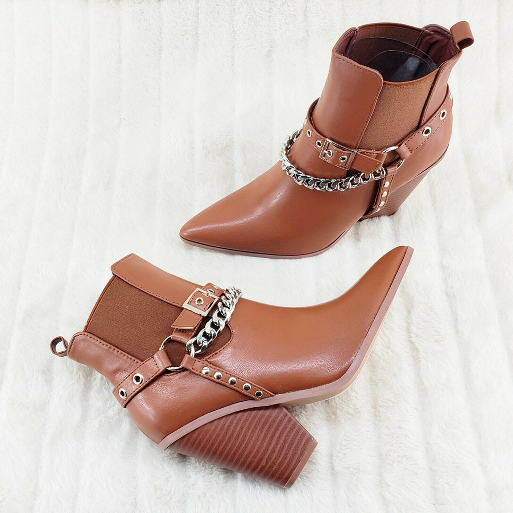 Dimitri Western Chain Strap Cowboy / Cowgirl Pull Ankle Boots Tan 6-11