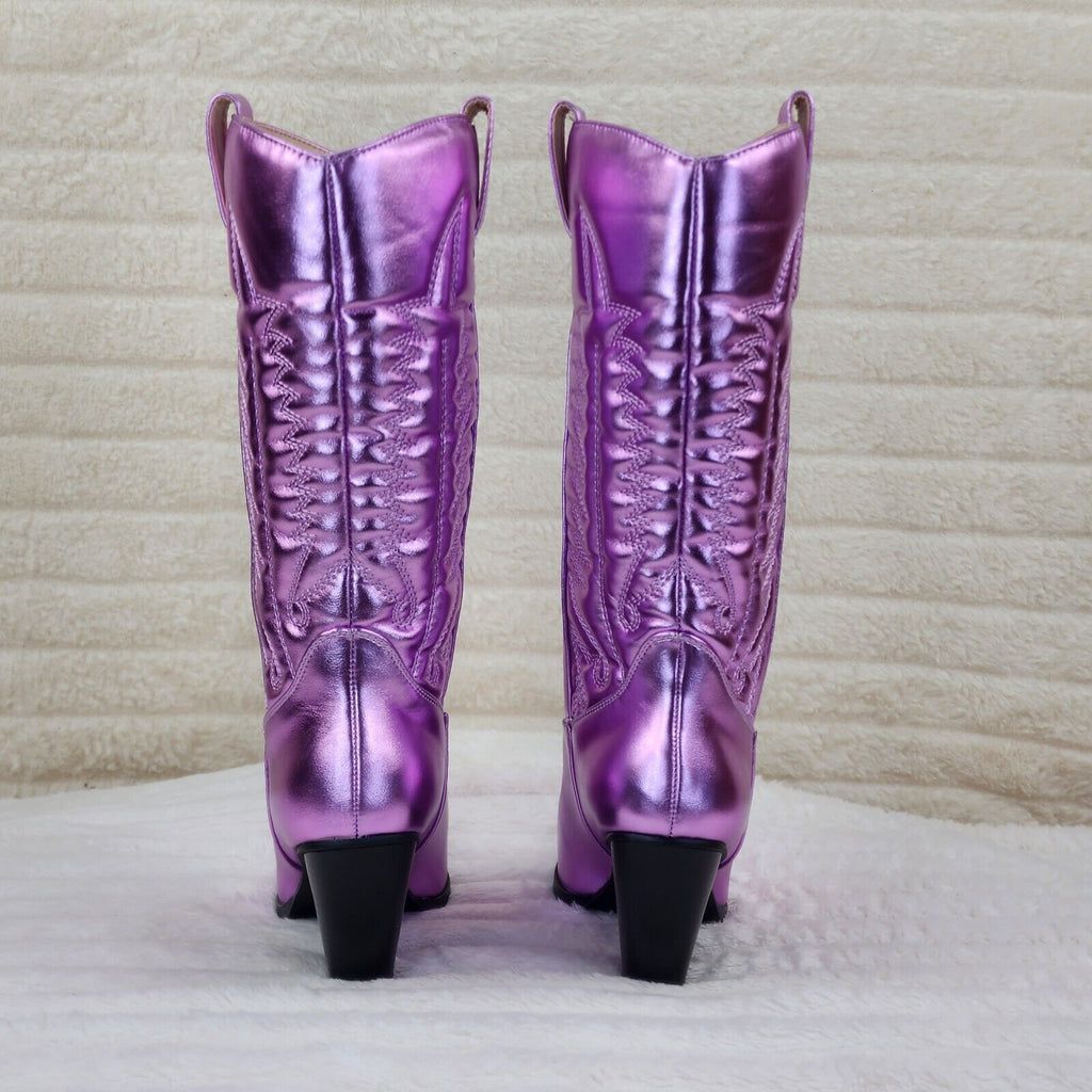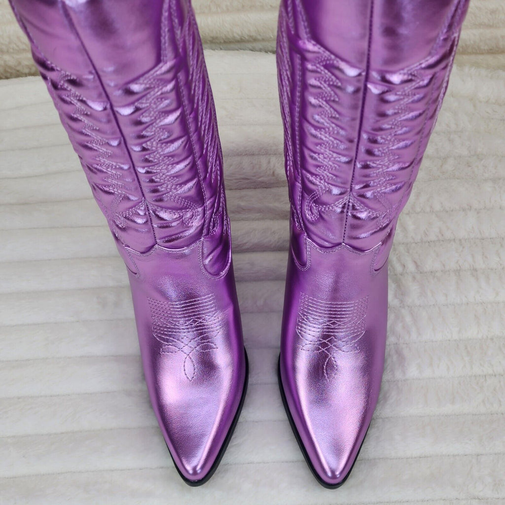 Disco Cowgirl Metallic Lilac Purple Cowboy Knee Boots Western Block Heels US