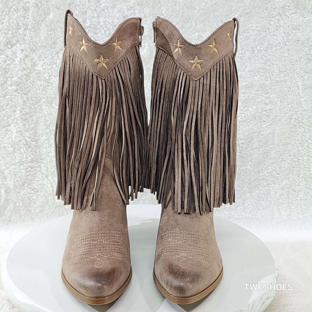 Dusty Mid Calf Coco Taupe Fringe Country Western Cowgirl Boots