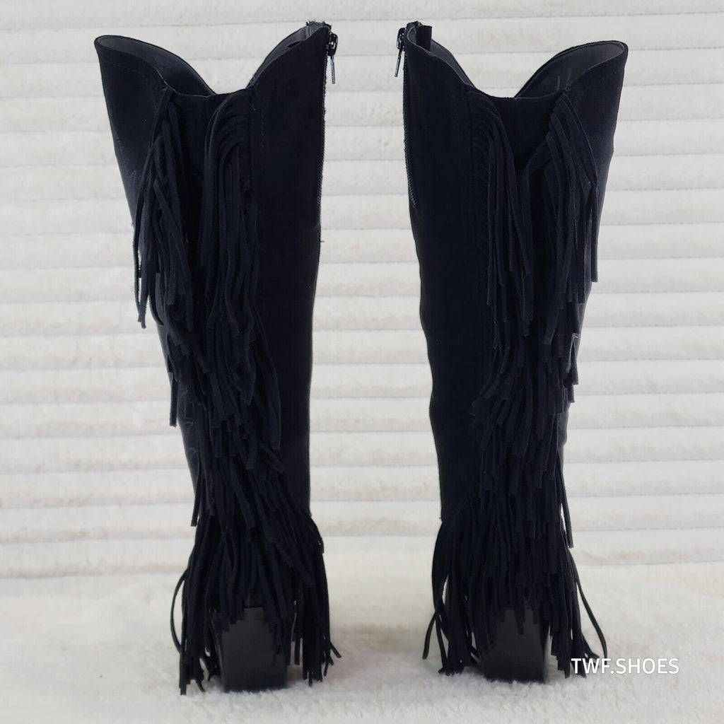 Dusty Roads Black Faux Suede Back Fringe Western Cowgirl Boots