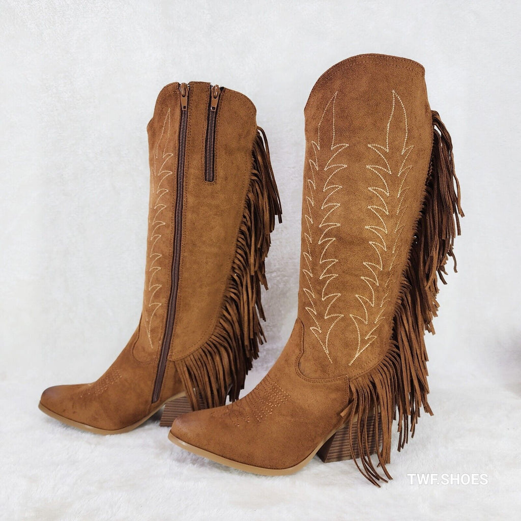 Dusty Roads Whiskey Brown Back Fringe Cowboy Western Cowgirl Boots