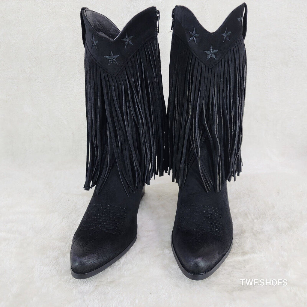 Dusty Trails Mid Calf Jet Black Fringe Country Western Cowgirl Boots