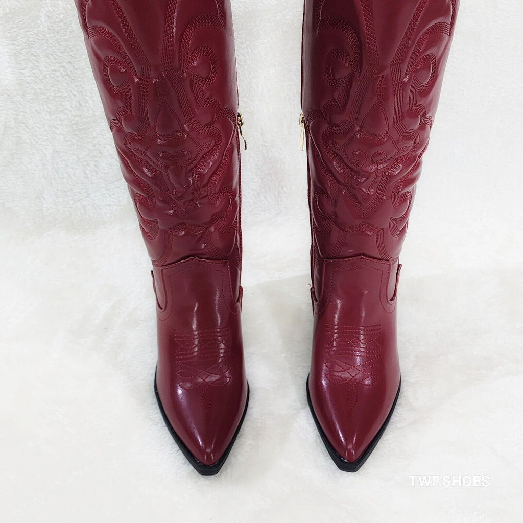 Electric Cowboy Burgundy Matte Western Knee High Cowgirl Boots Red