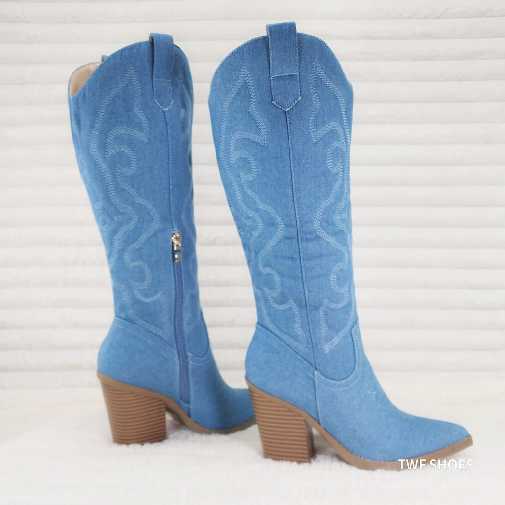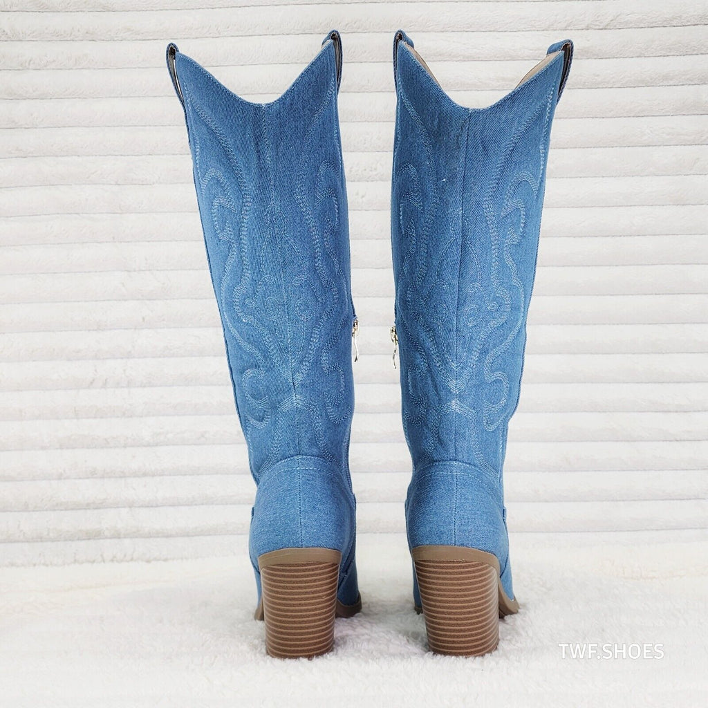 Electric Cowboy Medium Denim Stitched Western Knee High Cowgirl Boots