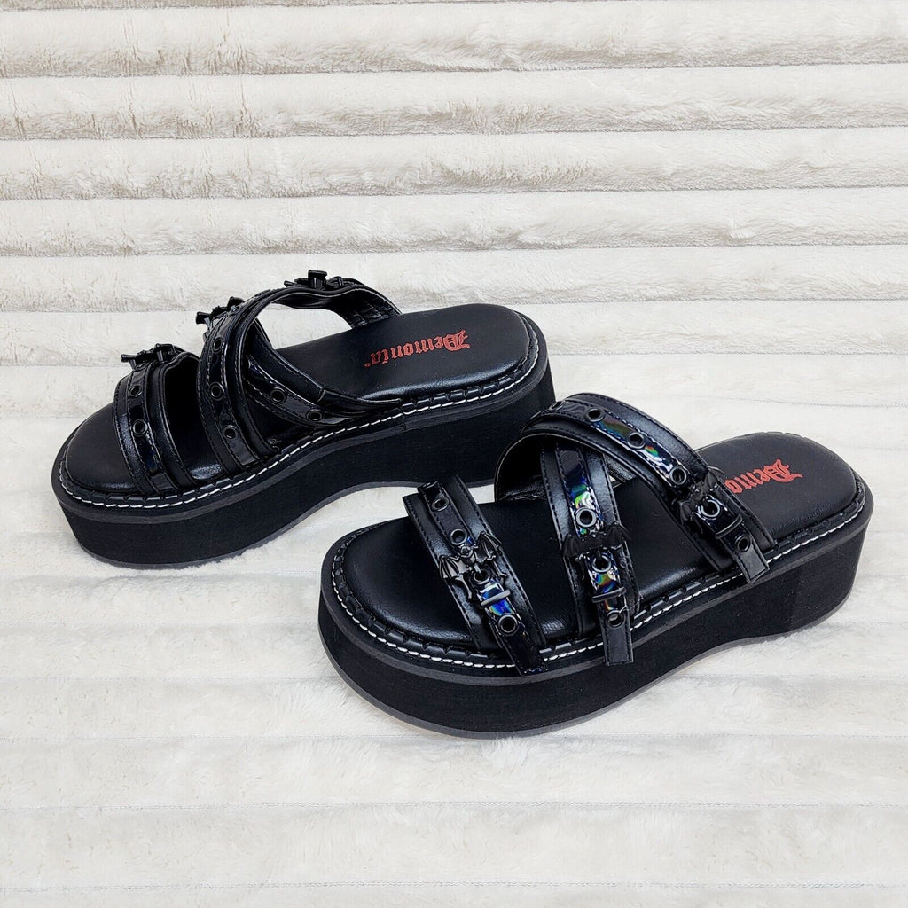 Emily 100 - 2 Black 2" Platform Bat Buckle Slip On Sandals Shoes 6-12 NY DEMONIA