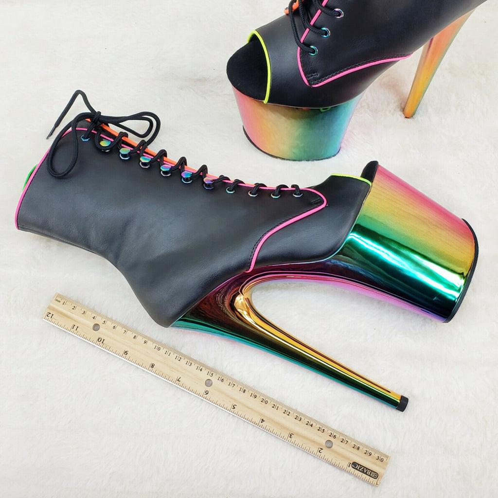 Flamingo 1021RC Rainbow Chrome 8" Heels Platform Neon Trim Ankle Boots NY