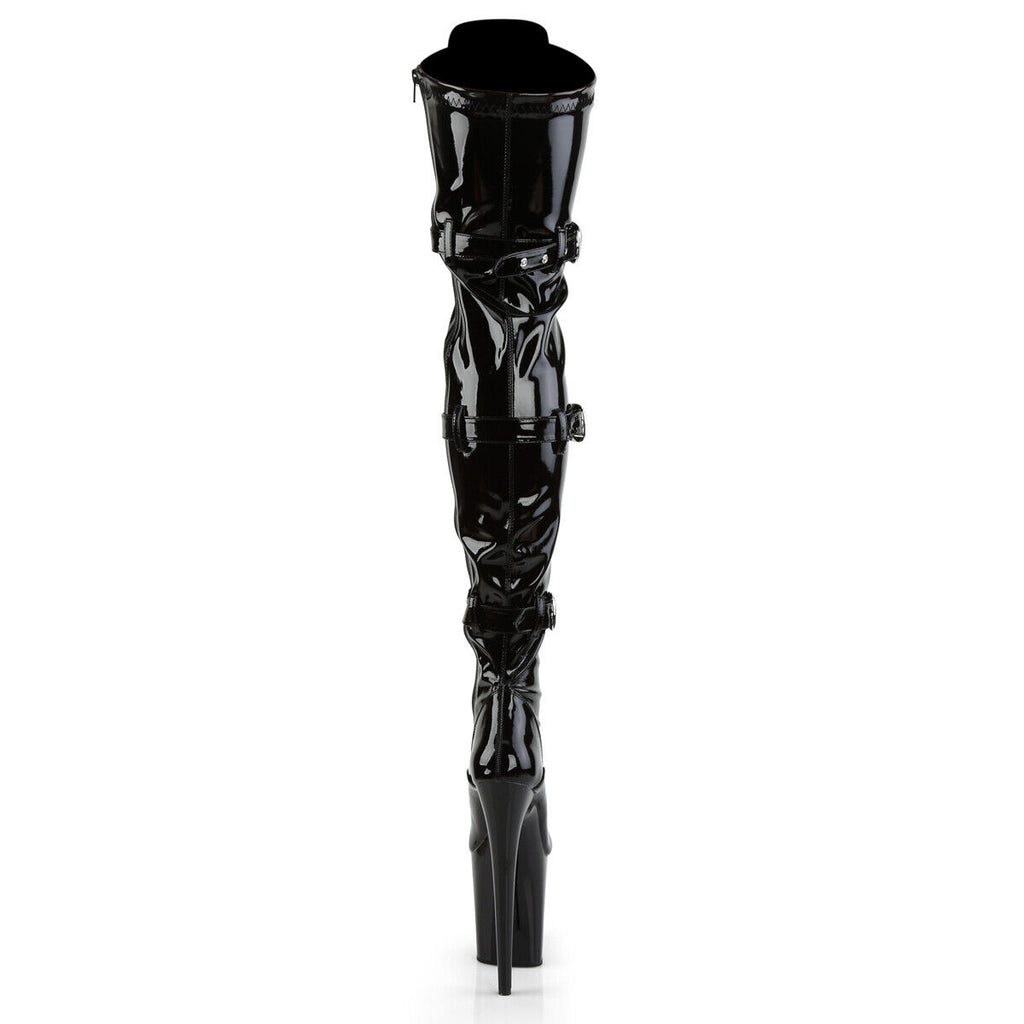 Flamingo 3028 Triple Buckle Thigh High Platform Torment Boots Patent 6-11 NY
