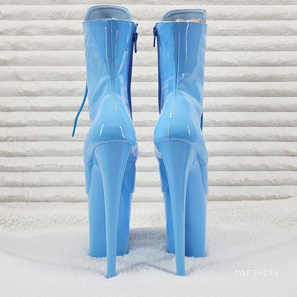 Flamingo Baby Blue Patent 8" High Heel Platform Ankle Boots NY